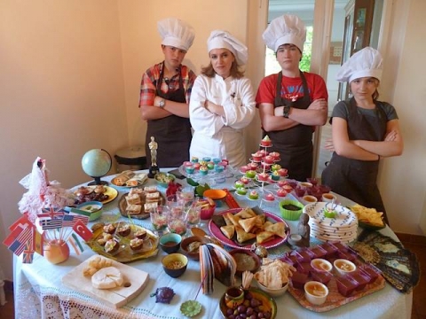 During these workshops, we cook together easy recipes based on a theme; we'll travel to a chosen country through the culinary culture, its language, its traditions. We decorate the table accordingly and eat all together the happily prepared food.