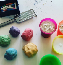 Avec @happykid.ch__happykidparty on vous propose plein d’activités pour les enfants, réalisables avec peu de matériel et accessibles à tous. Je vais donc proposer quelques une des activités que je fais avec mes loulous de 1,5 et 3 ans. Pour commencer un basique : la pâte à sel. Il vous suffit de mélanger 1 tasse de sel, 2 tasses de farine et 1 tasse d’eau. Pour les colorer : du colorant alimentaire ou comme ici de la craie râpée ! Les enfants adorent transvaser, puis mélanger et malaxer et enfin créer des formes, mélanger les couleurs, tripatouiller la pâte ! Super pour la créativité mais aussi la motricité fine... ou simplement, soyons honnêtes, pour les occuper un moment ! Alors à vos rouleaux et emporte-pièces !