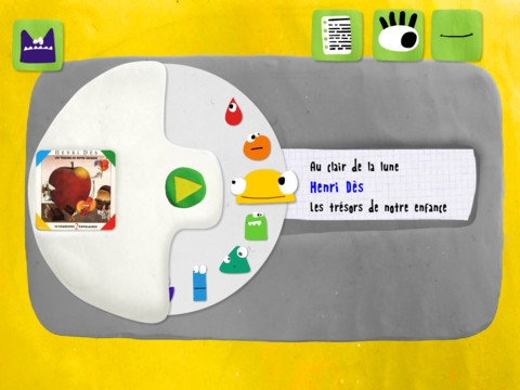 Choisissez vos chansons, consultez leurs paroles, osez une séance de distorsion sonore, chantez et enregistrez-vous… tout ceci en compagnie d’une joyeuse bande de petits monstres imaginés pour aider les plus jeunes à naviguer tactilement. (...)